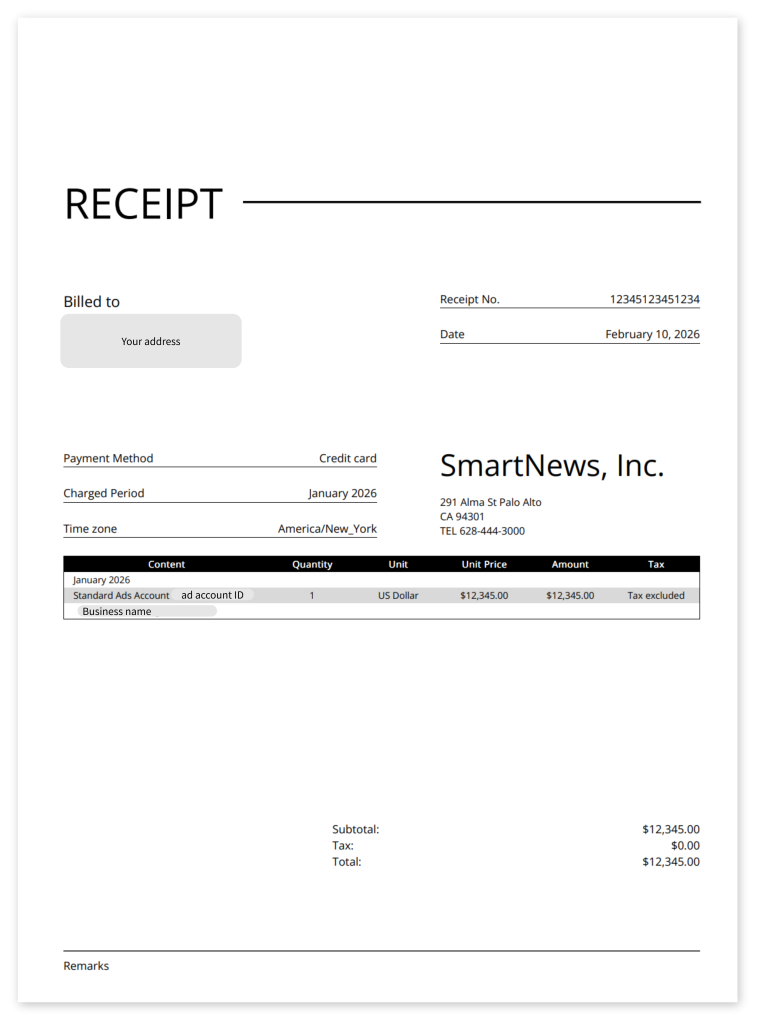 After each billing cycle, SmartNews will send you a receipt in PDF format.