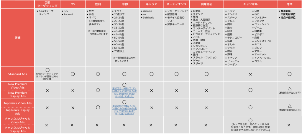 ※ 弊社のターゲティングは、ユーザーの設定、使用デバイス、弊社App(アプリ)上でのユーザーの行動からの推定などに基づく機能です。ターゲティングの精度(正確性)については、弊社が保証するものではなく、ユーザーの設定その他の要素によって異なる場合があります。