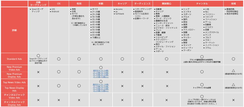 ※ 弊社のターゲティングは、ユーザーの設定、使用デバイス、弊社App(アプリ)上でのユーザーの行動からの推定などに基づく機能です。ターゲティングの精度(正確性)については、弊社が保証するものではなく、ユーザーの設定その他の要素によって異なる場合があります。