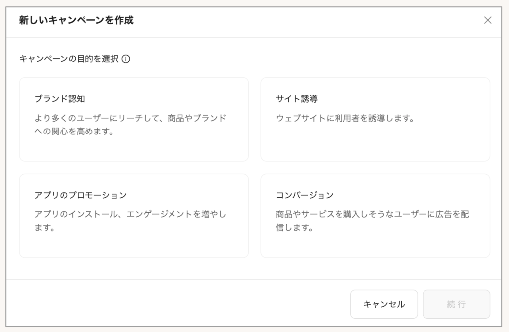 - 全てのキャンペーン目的が対象