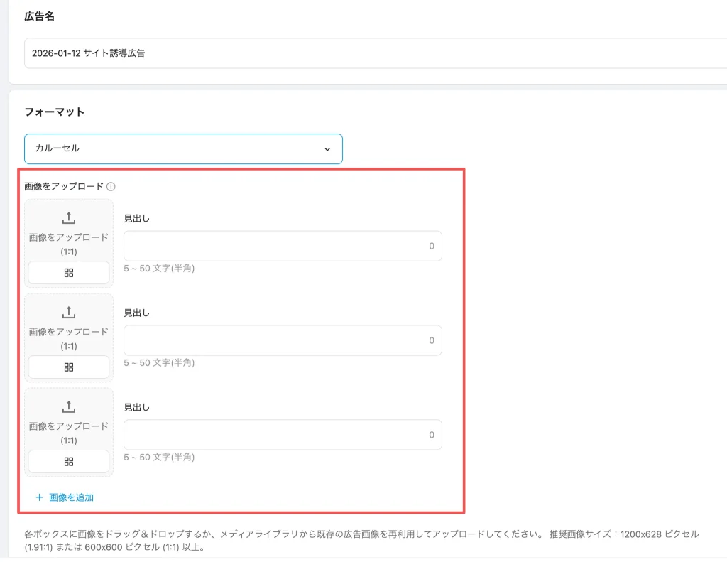 - カルーセルフォーマットの場合: